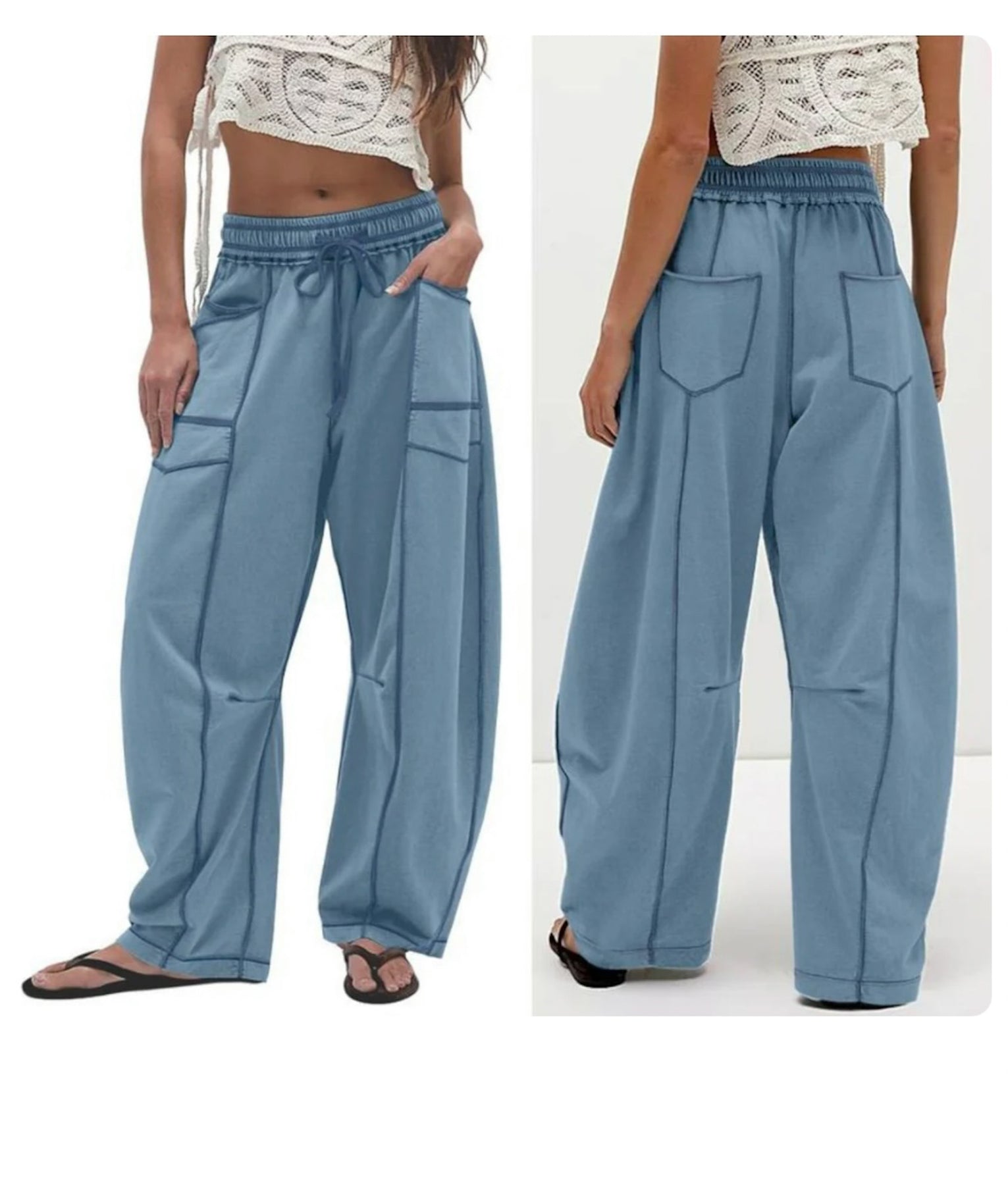 Regular price $35.00Get cozy and chic with the Chloe Women’s Stretch Knit Barrel Pants. These pants combine playful contrast stitching with a flattering barrel cut, all made from soft stretch fabric for all-day comfort. Perfect for lounging or stepping out, they’re sure to become your new favorite go-to pants! Available in Baby blue or rust brown. Only available in size Large.