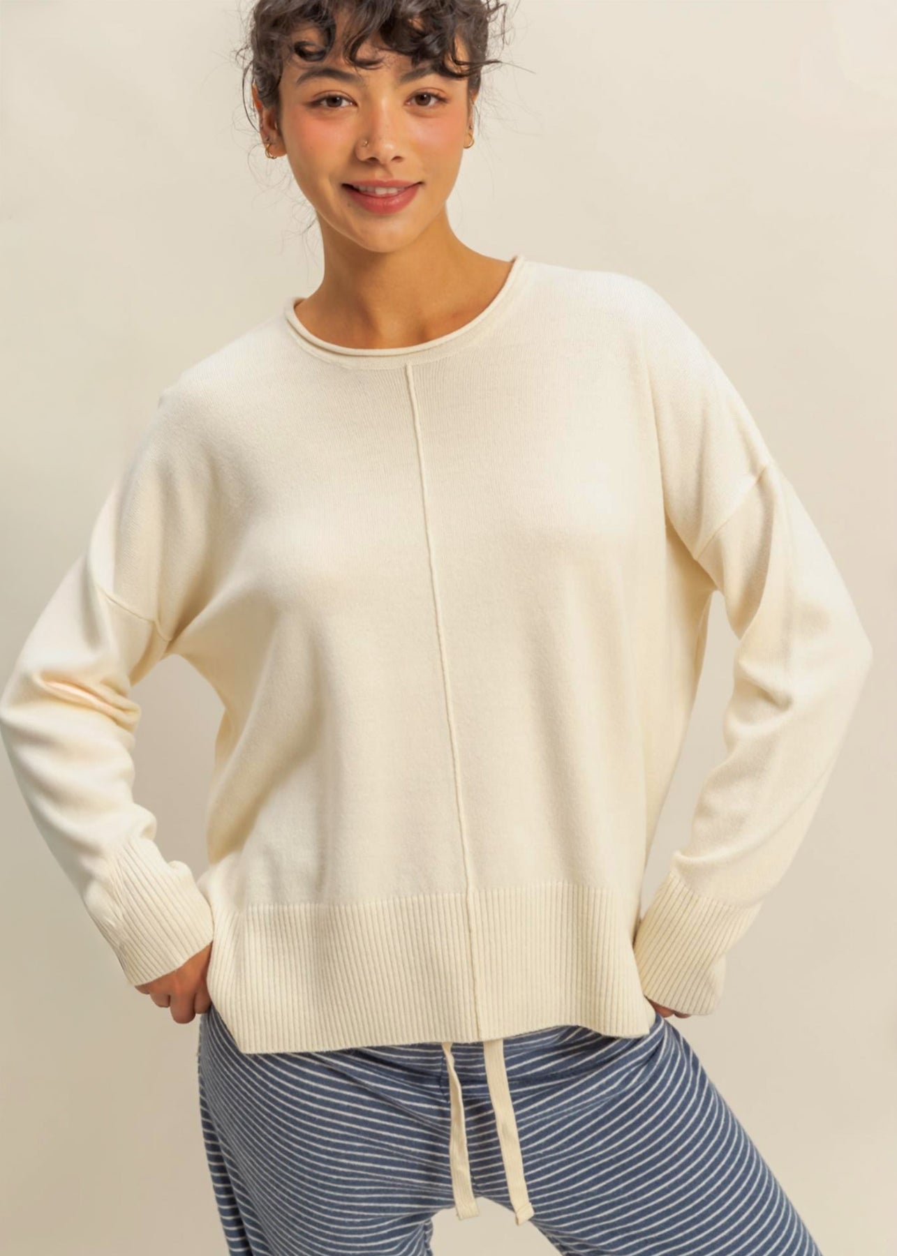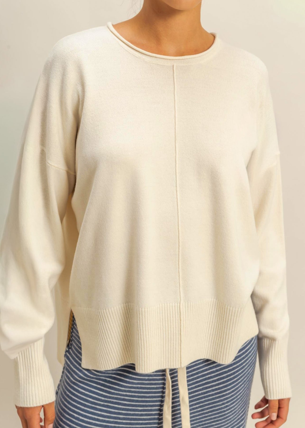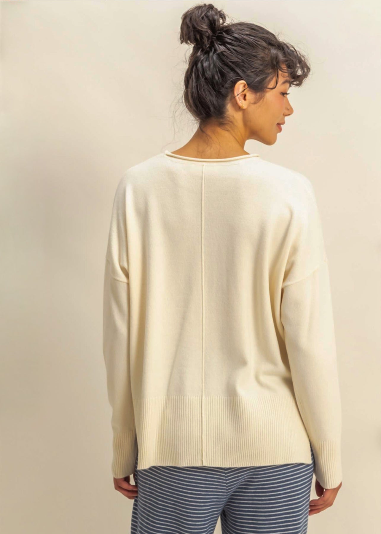 Amélie, Womens Rolled Neck, Long Sleeve Sweater, Sweet Cream